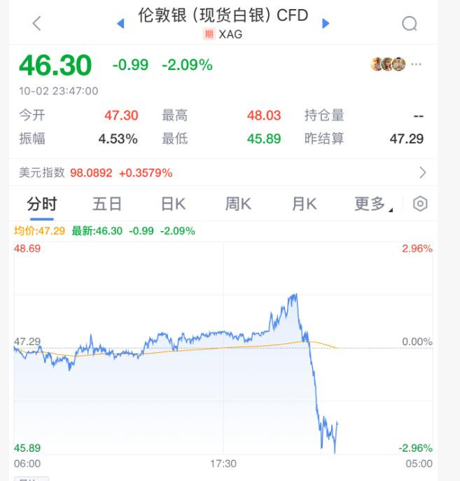10月2日晚,不断创下新高的黄金价格,突然大幅度跳水,持续走低,一度跌破3820美元/盎司,日内较最高点回落约80美元,一度跌超1%,此前一度大涨超1%至3896美元/盎司。现货白银日内跌幅超2.00%,现报46美元/盎司,此前一度站上48美元/盎司。